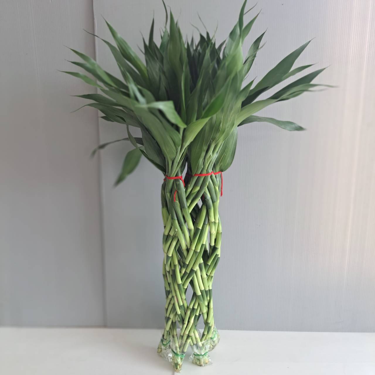 • Crafted from healthy Dracaena sanderiana stalks, expertly braided to create a dense, balanced form.