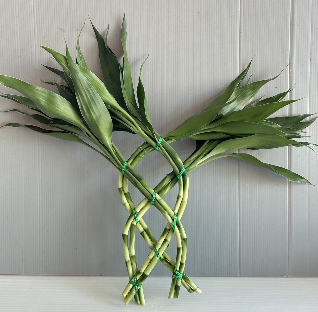 • Unique crossed and braided lucky bamboo structure specially designed for compact wall display.